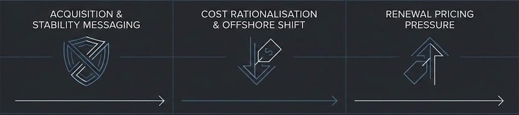 The most dangerous infrastructure risk is the one that compounds quietly — in renewals, offshored support, and stalled roadmaps. By the time the impact is visible, strategic options have narrowed. Leaders who retain leverage treat vendor stability as an ongoing priority, not a crisis response. If your provider no longer has a reason to invest beyond the current contract, the time to act is before the next renewal.