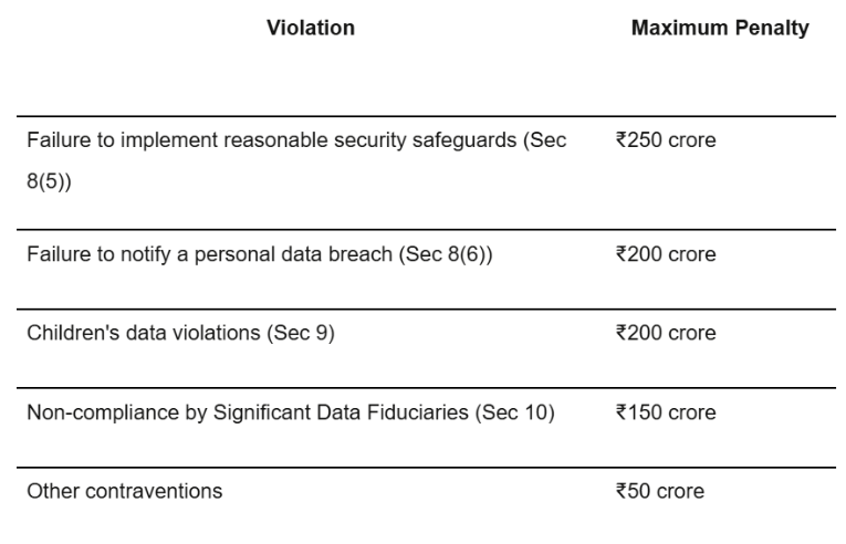 - Section 8(5): You must implement reasonable security safeguards to prevent personal data breaches. Penalty for failure: up to ₹250 crore — even if no actual harm occurs.