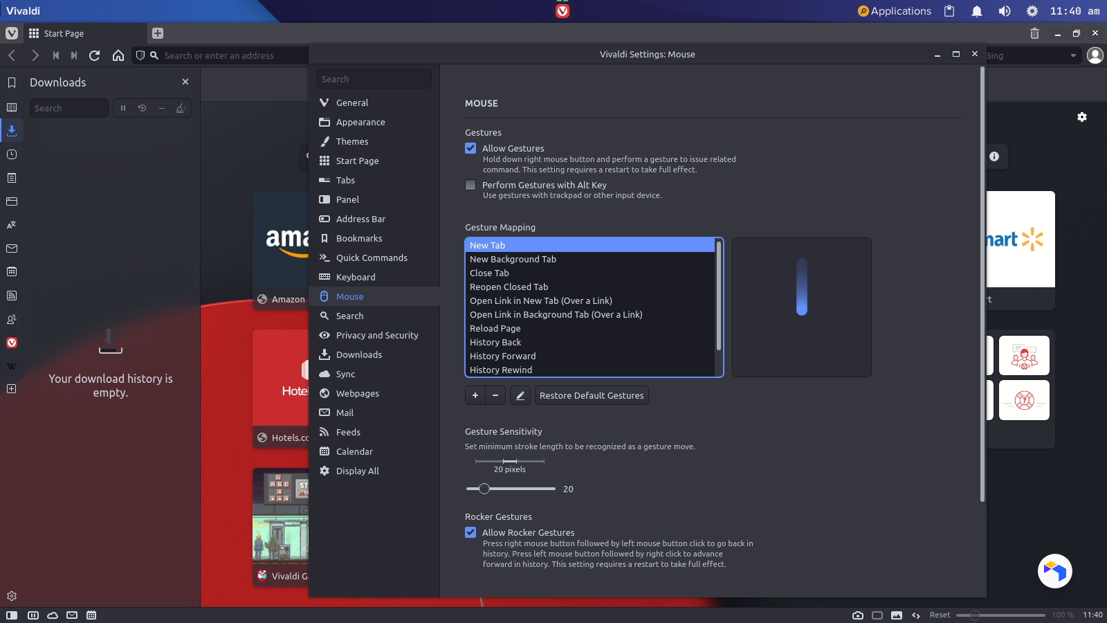 Further, the browser offers a gestures feature that allows users to create custom mouse or trackpad-based gestures to perform a variety of functions. Vivaldi already has a set of pre-defined gestures offered by default which can be edited to perform a particular task as per the users’ requirements.