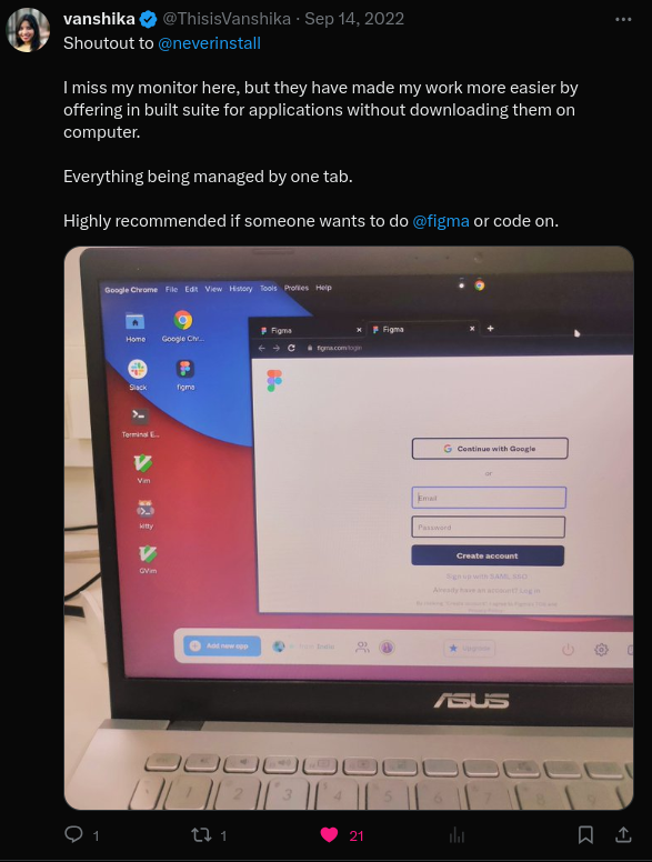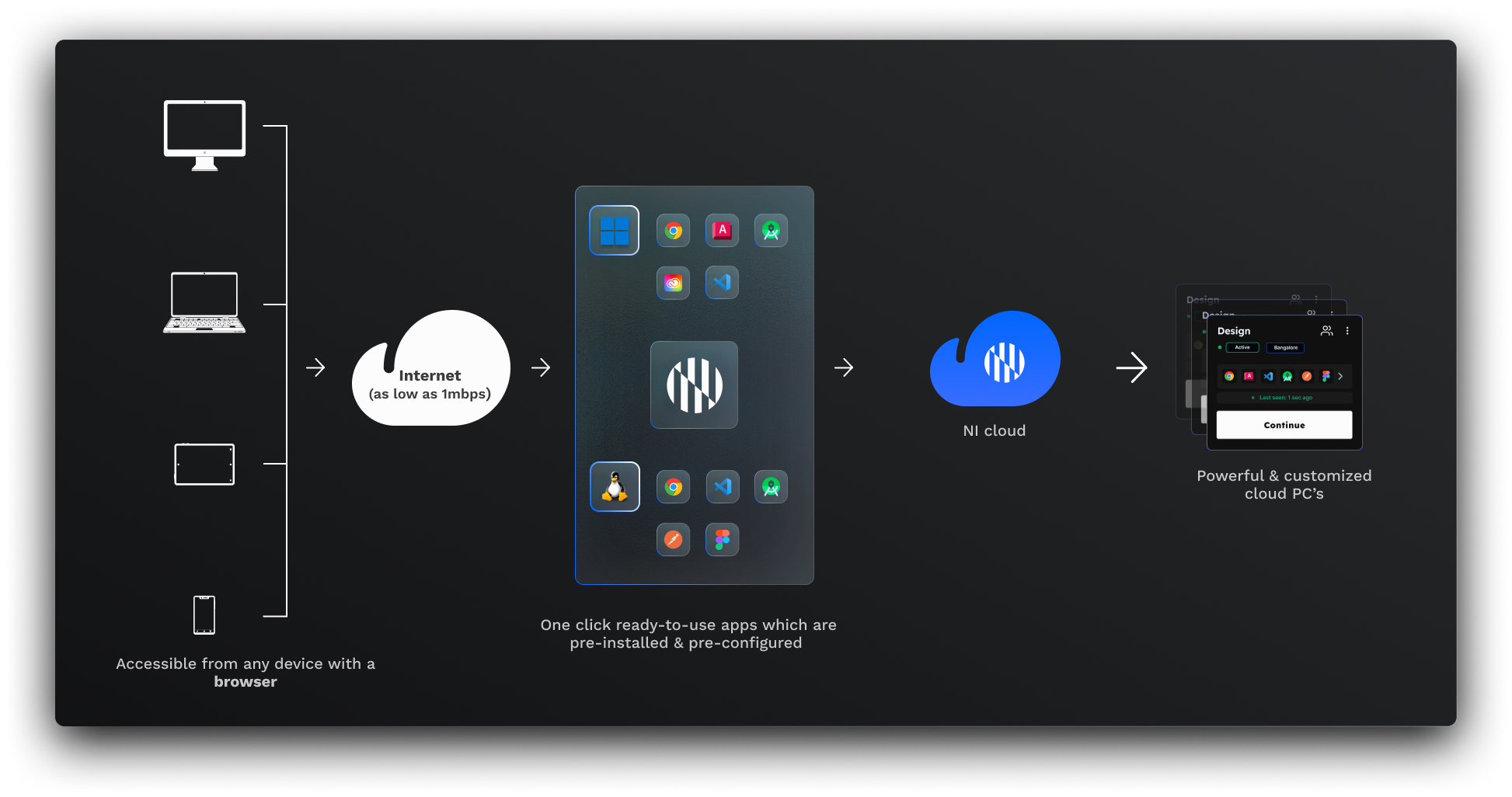 - Neverinstall: As pioneers in offering Cloud PCs to users, we provide a choice between Windows or Linux OS, along with a wide range of popular apps and ample customization options. All you need is just a browser and an internet speed of 1Mbps π Dive into our detailed comparison in our previous blog.